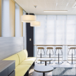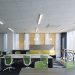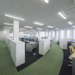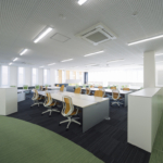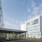 3つめは働き方改革です。フリーアドレス制の導入やオフィスレイアウトの検討を行い、職場環境の向上を図りました。既存の建物を活かしながらも、コンセプトに沿った増築や間取りの変更、EVの設置等を行いました。又、建物の全面に会社のシンボルとなるよう設置した鉄塔の周辺には出来るだけ植栽を施し、職場環境、周辺環境への配慮を心掛けました。