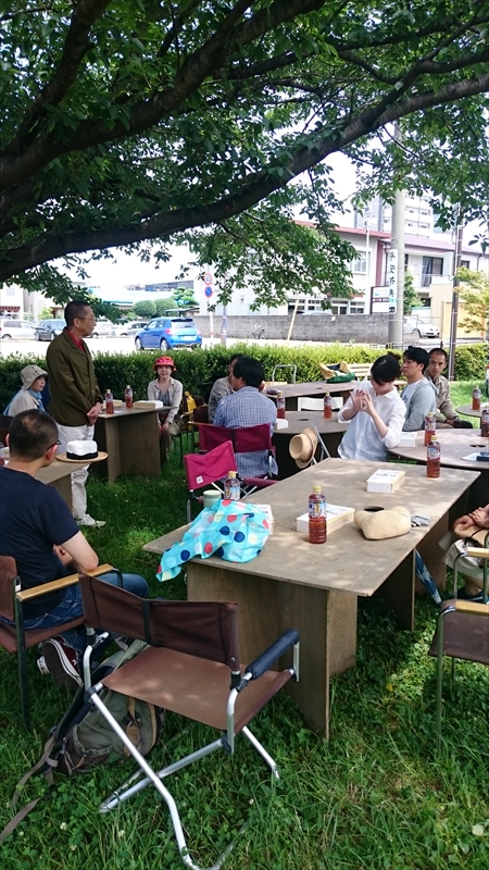 メンバーは四ツ角マーケット実行委員の方々と、いつもお世話になっている近隣の方々。それから、連空間社員です。
