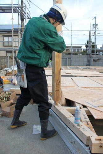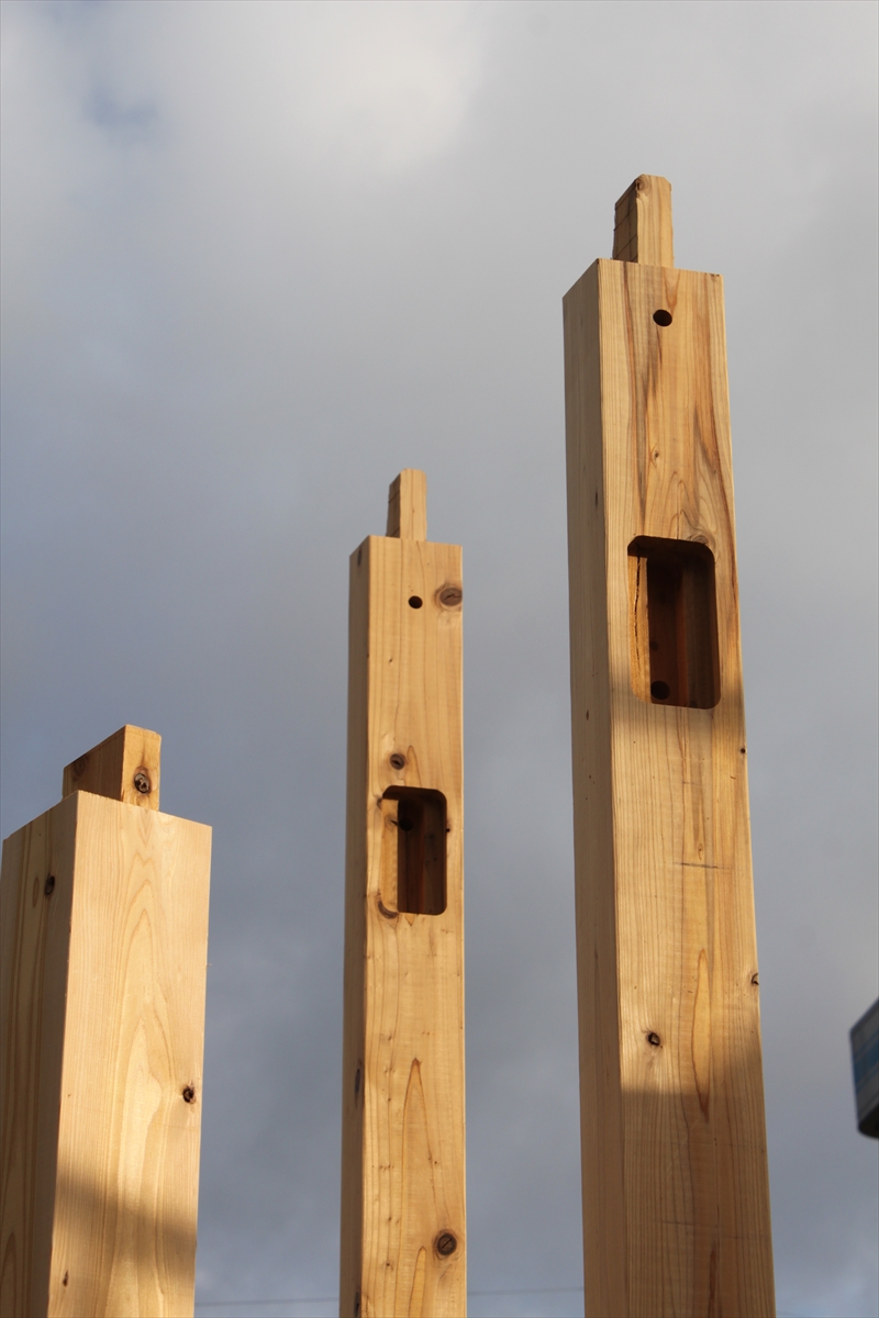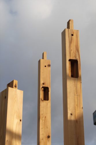 柱には設置する場所が書かれていて、各々土台の穴にはめ込んでいきます。