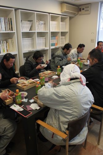お昼休みは大工さん達をお弁当と手作りの豚汁でおもてなしでした。