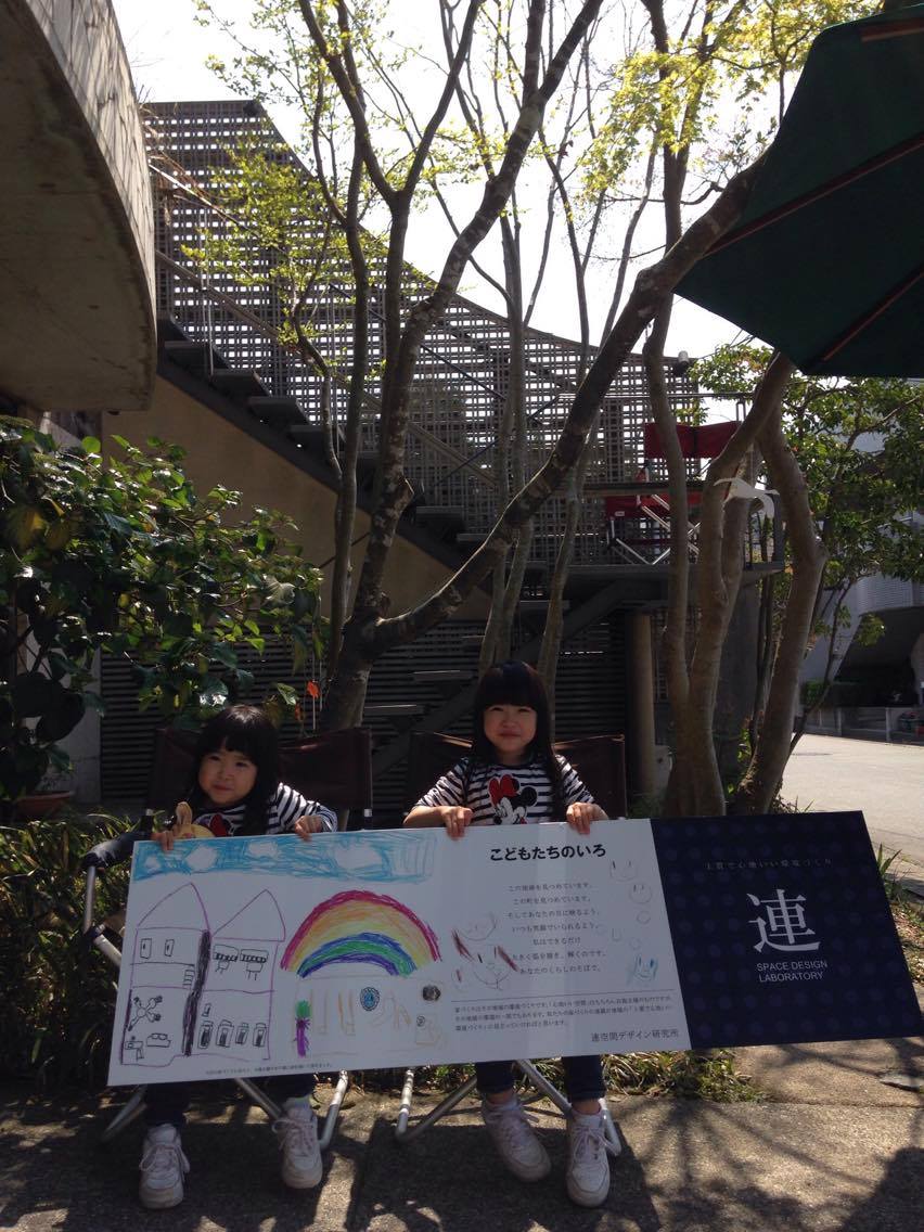 連の住宅では、お施主様のお子様が描いた絵を工事看板にしています。