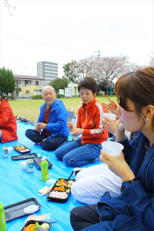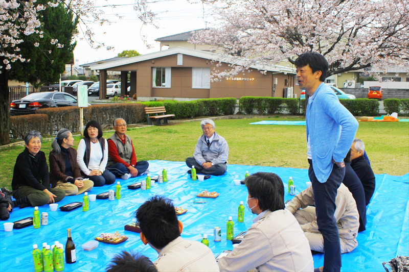 連の社員や、いつもお世話になっているご近所の皆さま方など、大人数でのお花見。