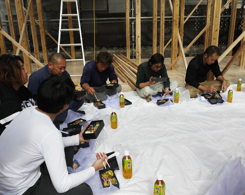 お昼にお施主様より振舞っていただいたお弁当をみんなでいただきました。