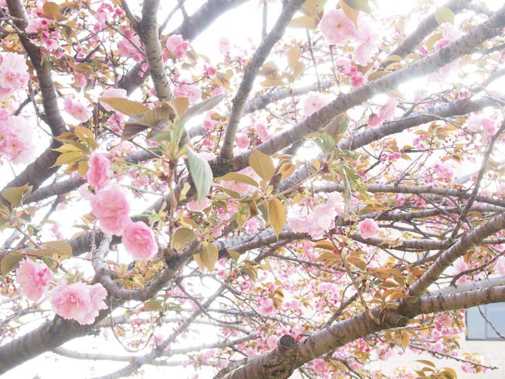 会社近くの鳥井原公園の八重桜、ピンクピンクに咲き誇り中。