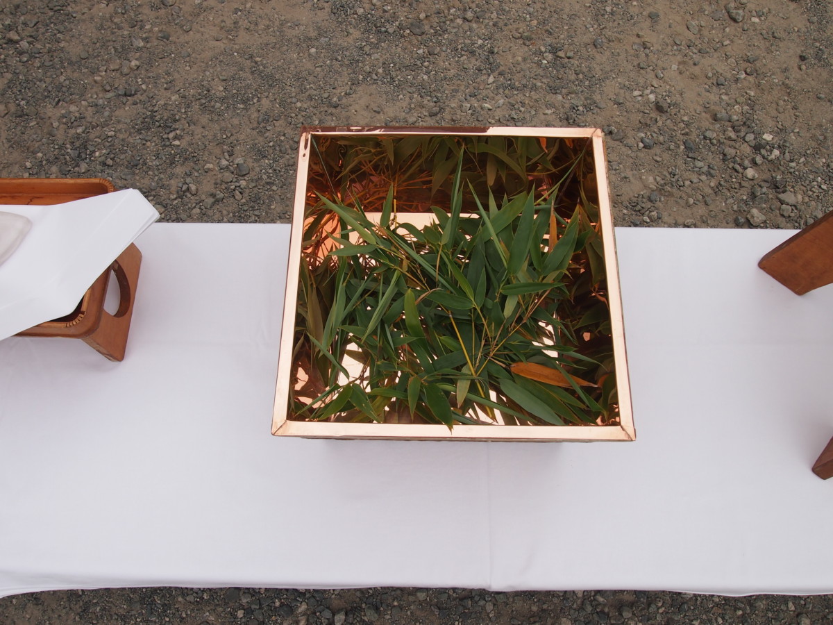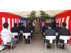 工事関係者一同で土地の神様に祈りを捧げます。
