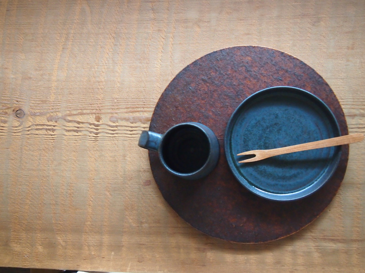 早水さんの手漉き和紙と都築さんの青銅色のうつわ