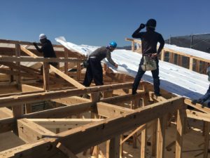 雲ひとつない青空の中、棟上げが行われました