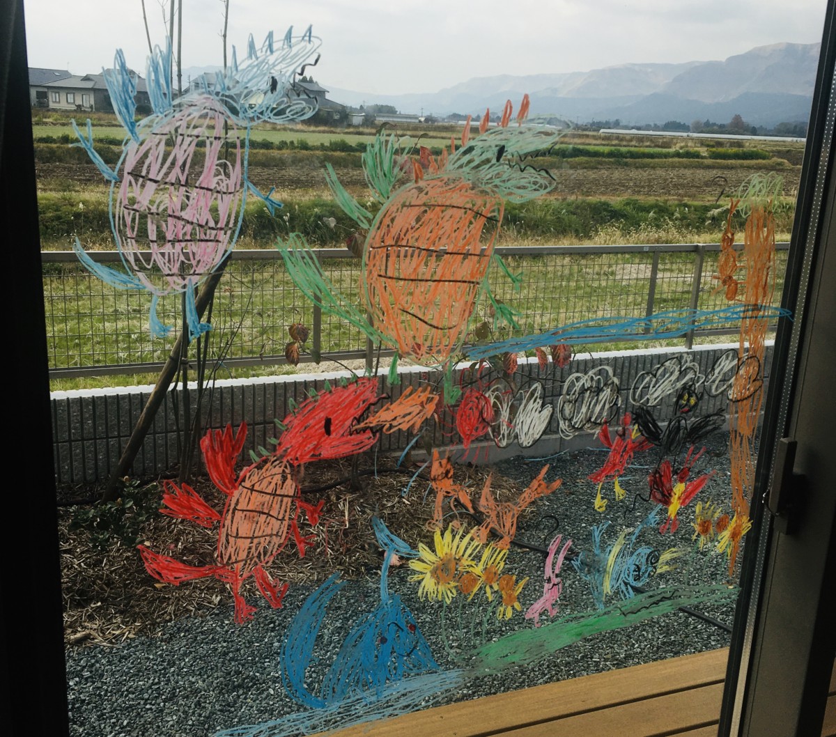 先日お伺いしたお客様のお宅の窓ガラスの絵
