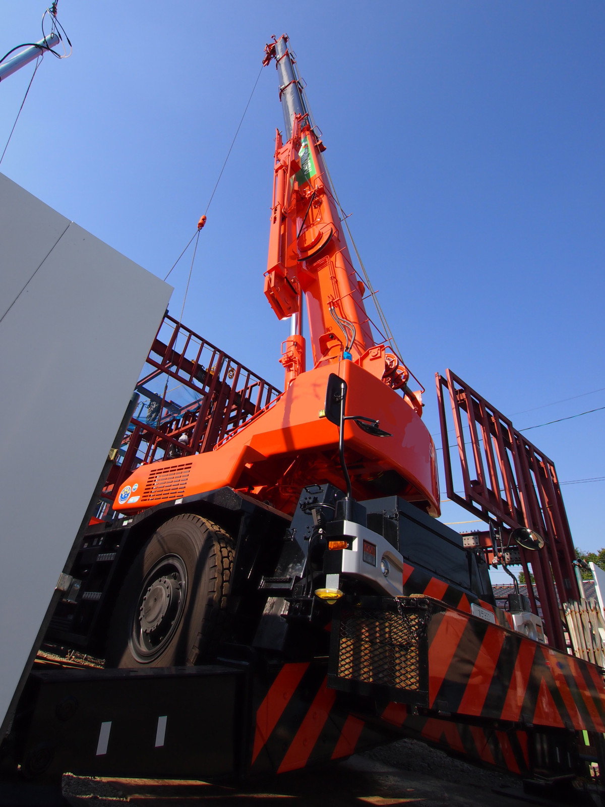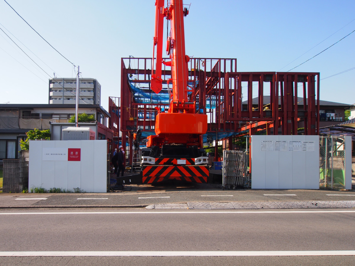先月、鉄骨を建てるために大きなクレーンが来ていました!