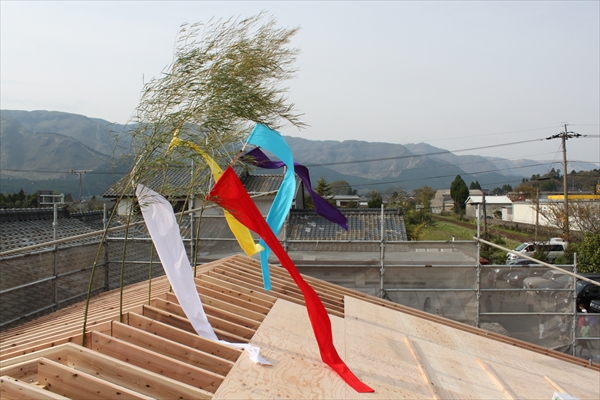 震災前、阿蘇のお客様邸で催した上棟式の様子をご報告します。
