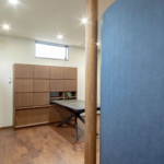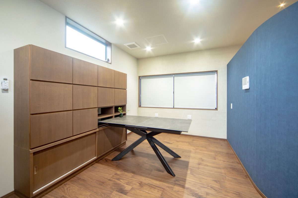 執務室、応接室、玄関、廊下、水廻りを10坪の空間に収めています。