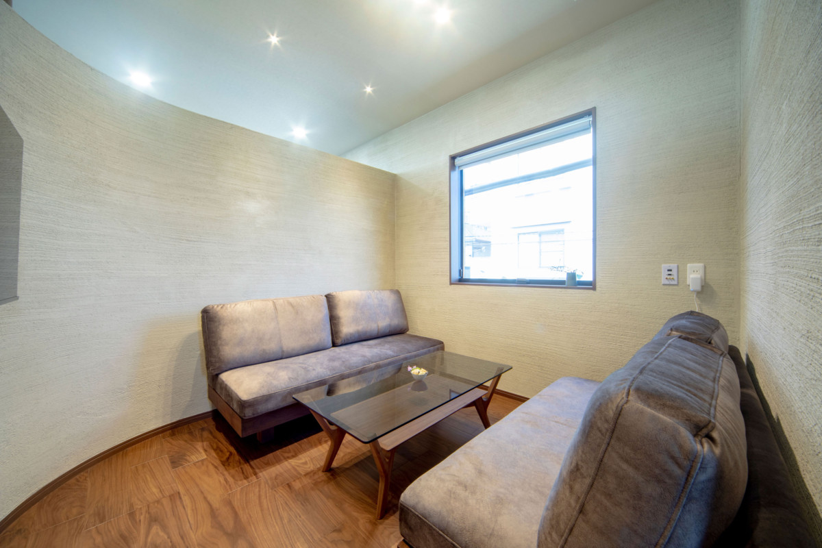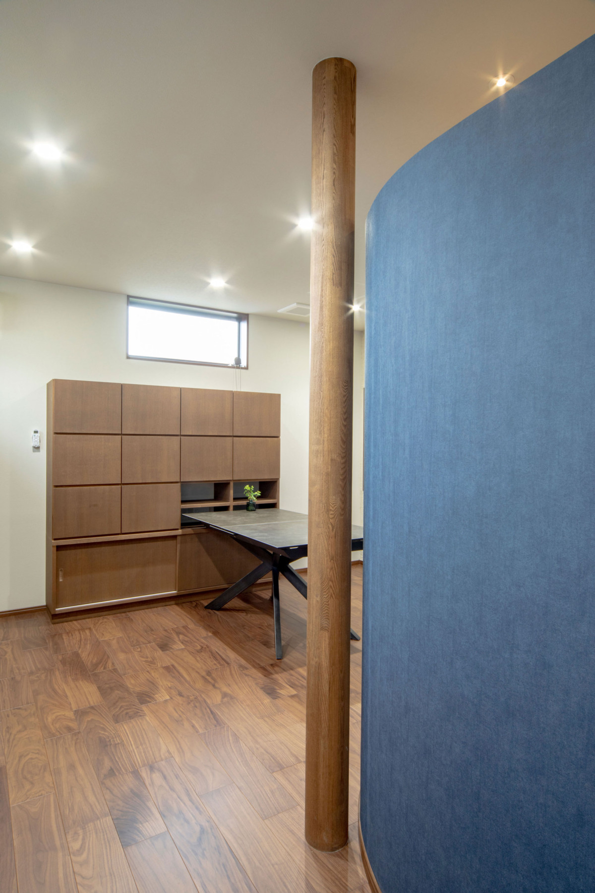 廊下や応接室は曲面の壁を取り入れ、執務室と応接室は壁の上部を空けることで、限られたスペースでも圧迫感が生じないように工夫しています。自宅のように落ち着いて仕事ができる空間づくりを心がけました。