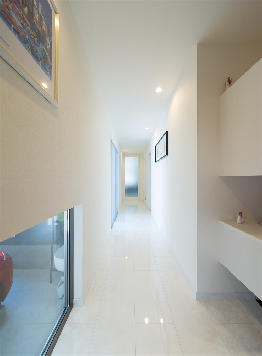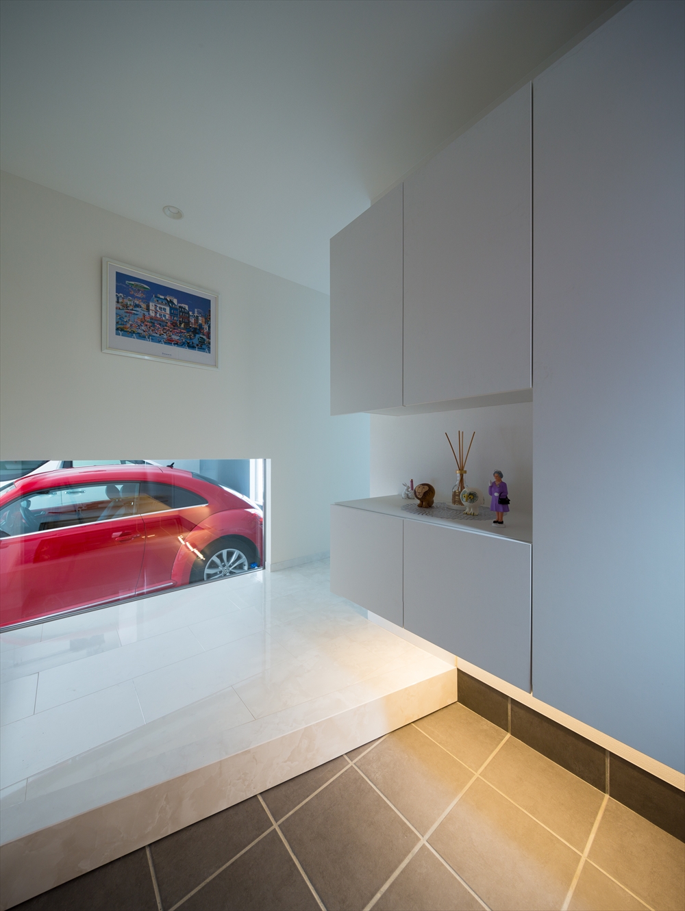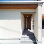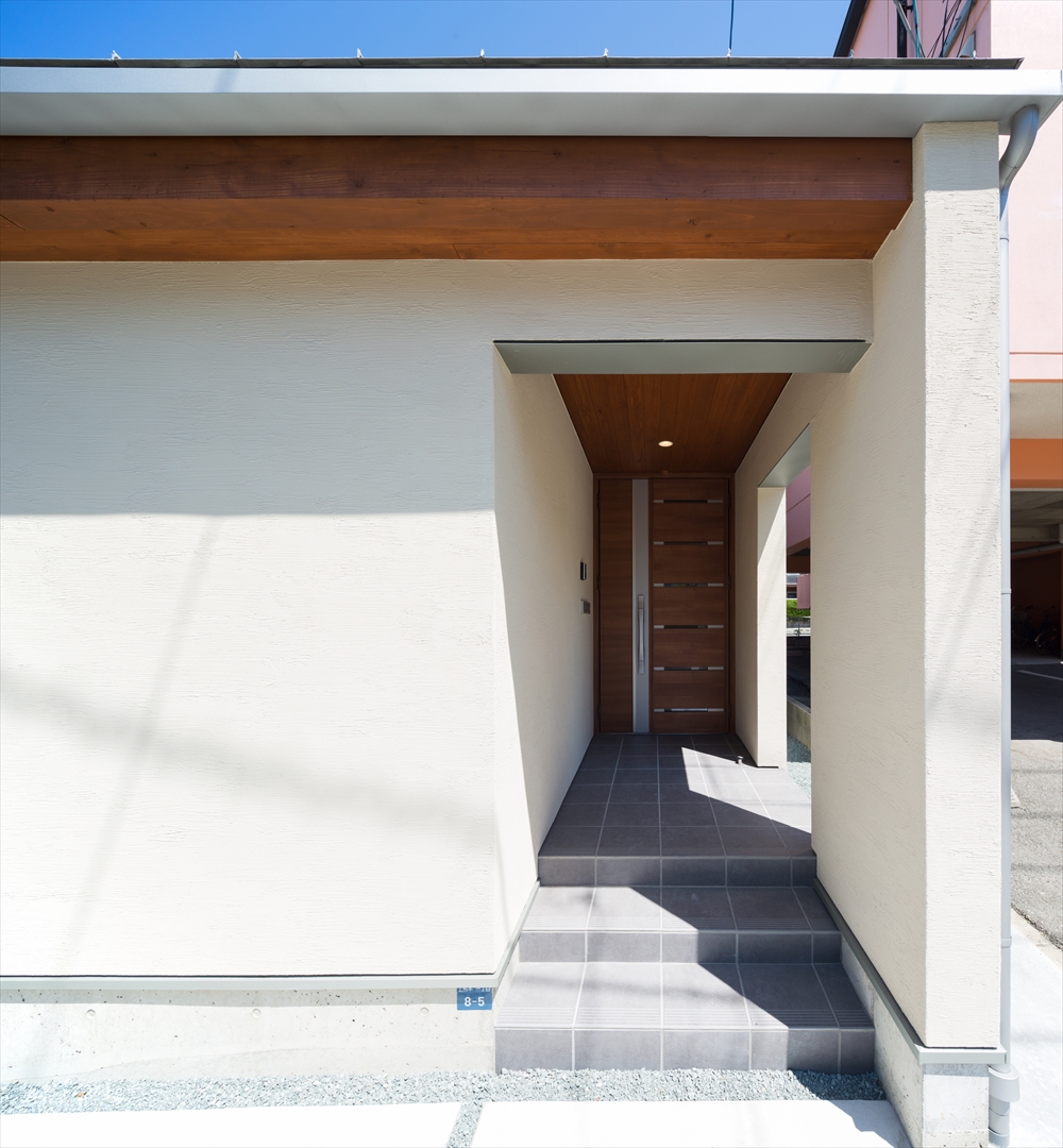 ポーチ 床/磁器質タイル 壁/左官仕上げ