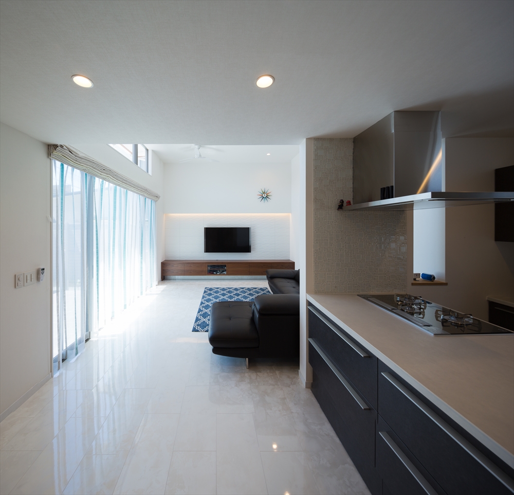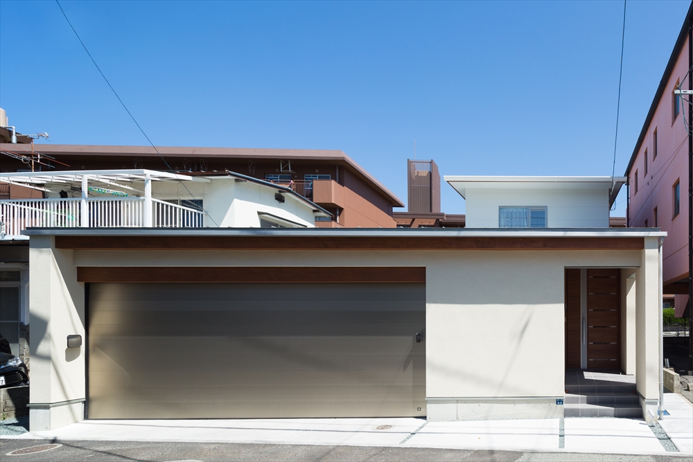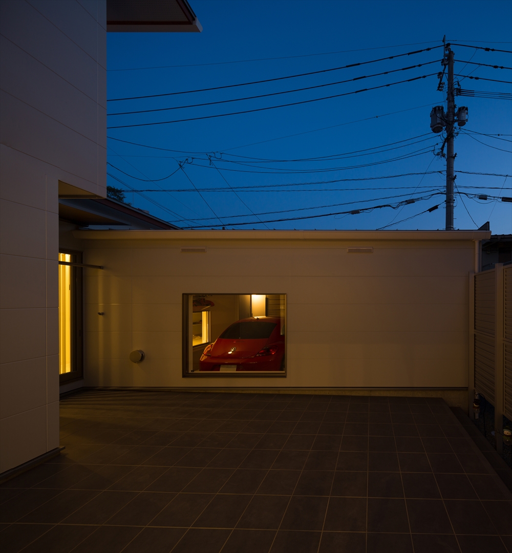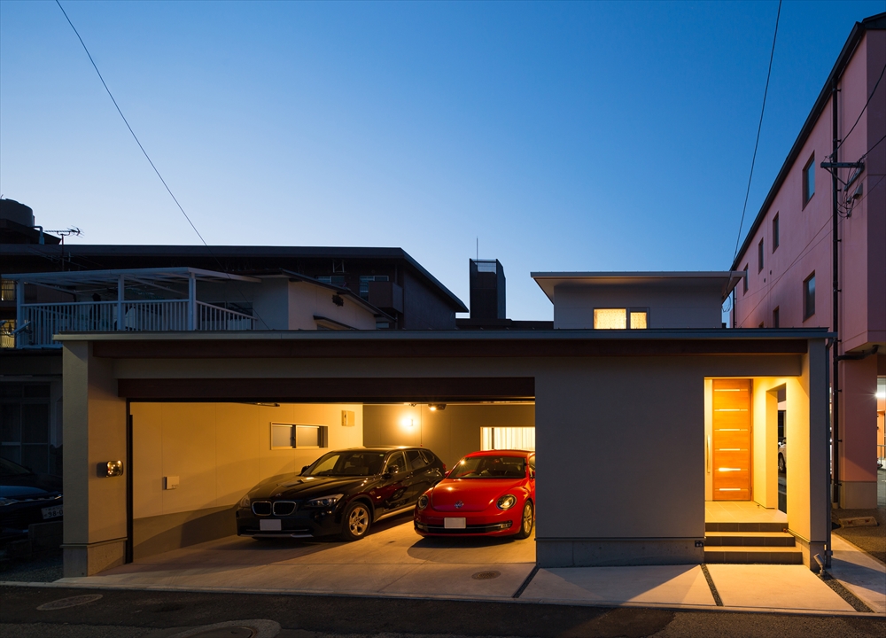 ポーチ 床/磁器質タイル 壁/左官仕上げ