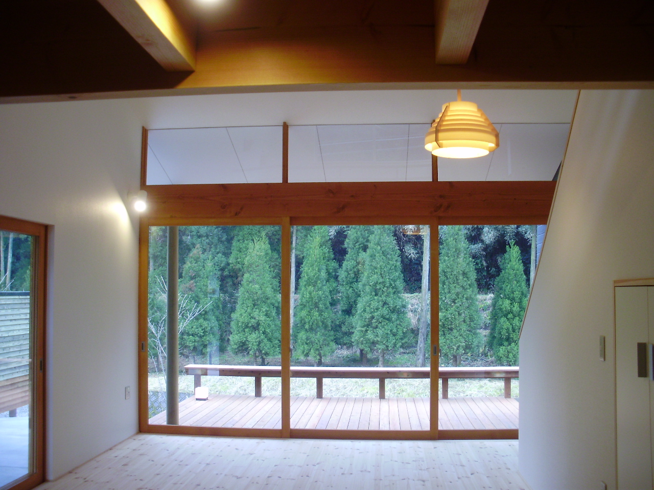 リビングの先にあるデッキは川面に向かって大きく跳ねだすようになっています。