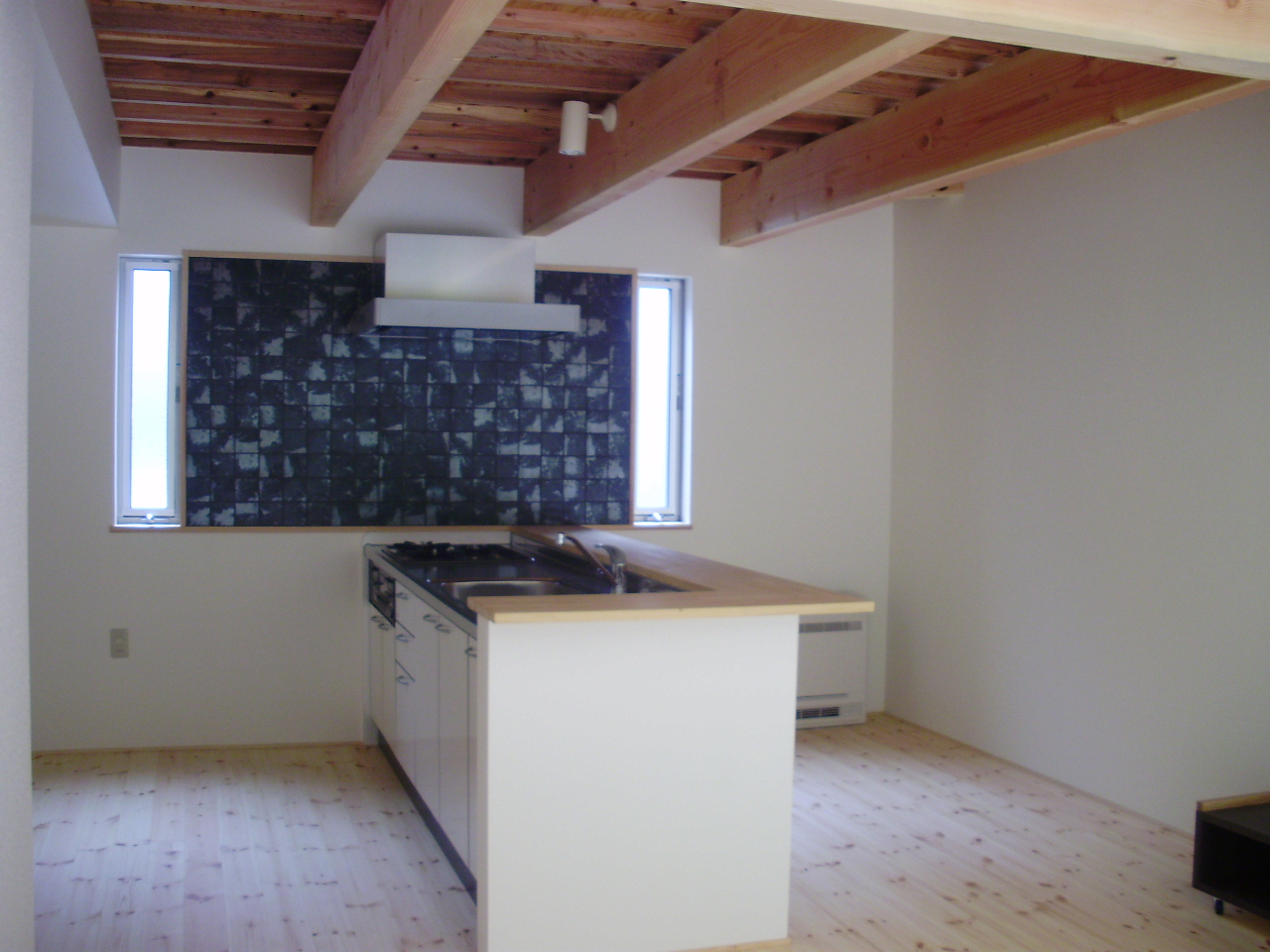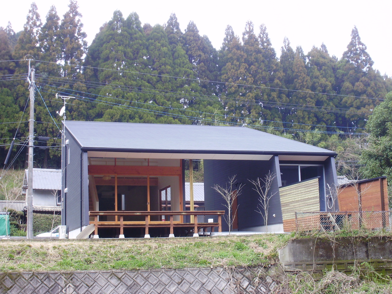 建築の全体は、ロフトを含む居室空間と、開放的な浴室などがあるユーティリティの空間に分けて外部空間(ガレージ)を挟み、大屋根をかける構成です。リビングやロフトにいるヒトも、ガレージに止まる愛車も、湯船につかっているヒトも大きな自然に向かって同じ方向を向いて、それぞれを感じながら過せれば・・・。