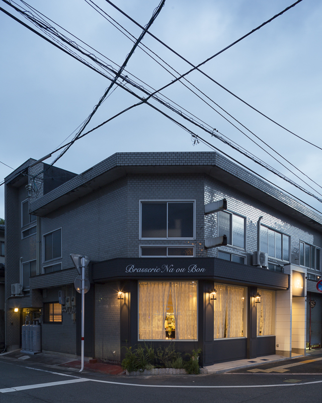 元喫茶店の建物をリノベーションしたものでしたもので、既存の壁タイルを活かしたファサードが印象的。