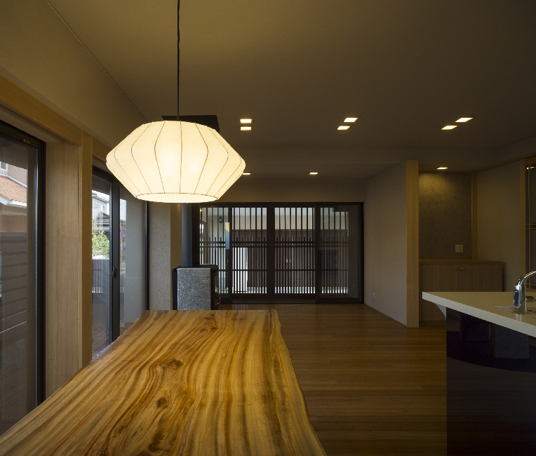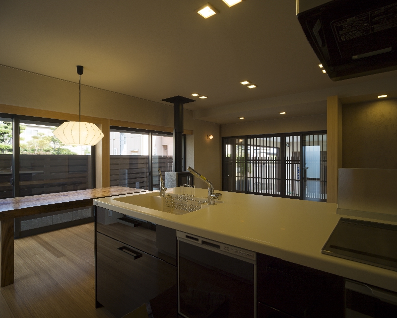 上層階まで上がらなくても生活ができるよう何も無かったガレージを住居に作り直しています。