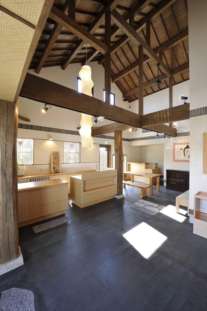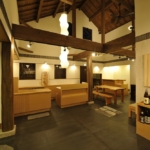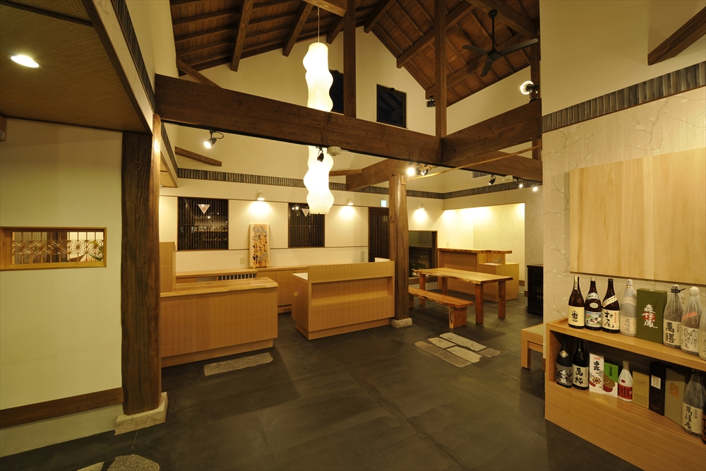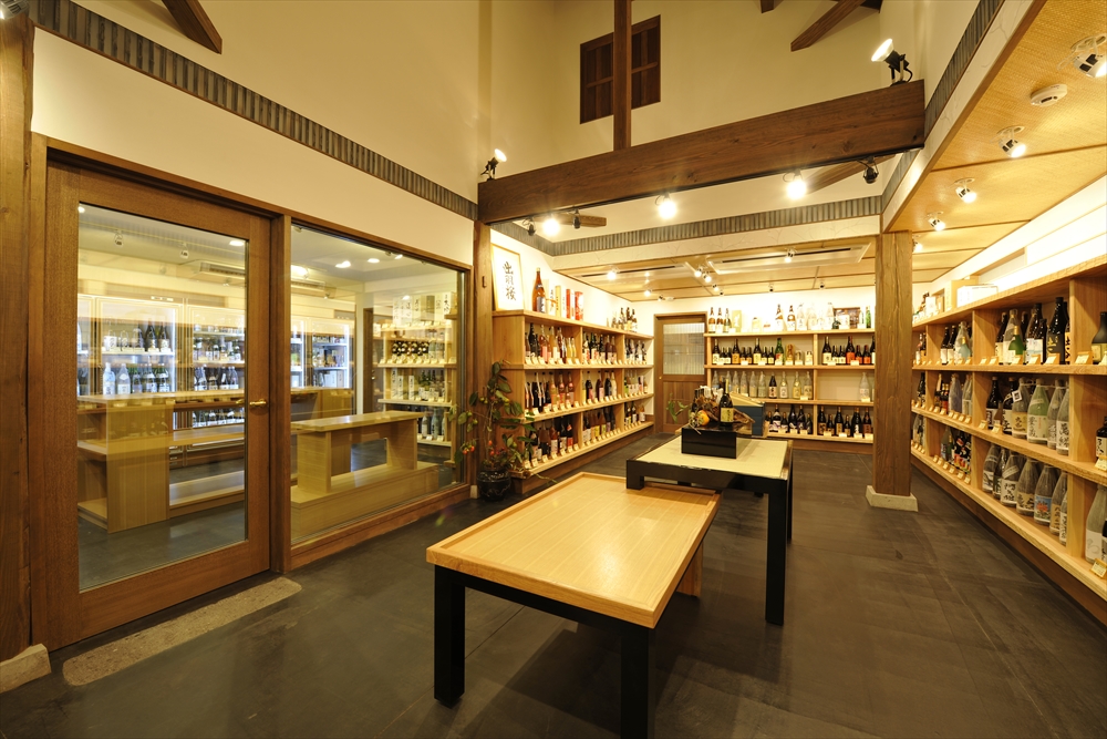 「まともな酒を、まともに仕入れ、まともに販売する」が信条の地酒店。ファサードイメージは酒蔵。店内はびっしりと地酒が並ぶ。人を大切にする店主の想いを受け止め、大きなレジカウンターを配すると共に、お客様と語らう小さなキッチン付きの空間も用意した。まるで出荷前の酒を寝かせる貯蔵庫のようなウォークイン冷蔵庫は、真心こめて醸された銘酒を、ゆっくりと紹介できる空間。卸も営む店舗だが、卸業務と小売り業務の導線が混在しないよう配慮し、小売りのお客様がじっくりとお酒と店主に向き合えるよう設計を心がけた結果、意匠も商品も店主の人柄もお客様の期待を裏切らない店舗が誕生した。