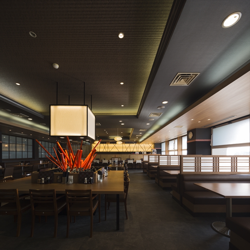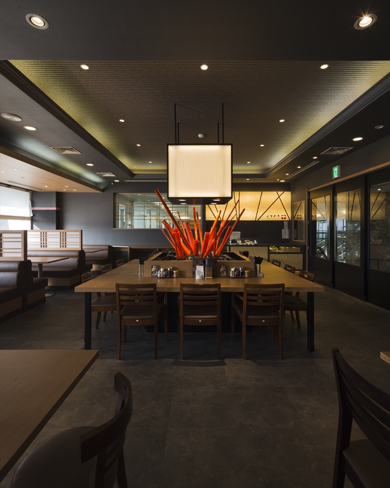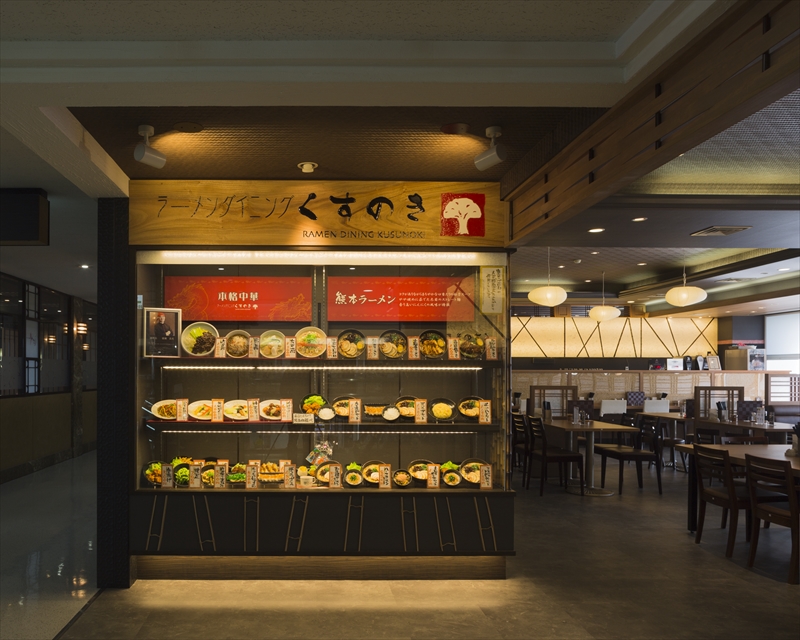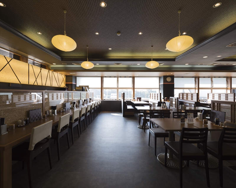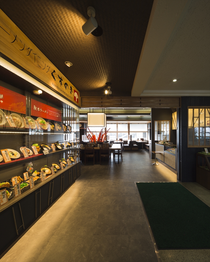 ― ラーメンダイニング くすのき ― 竣工/2015年7月 所在地/熊本県上益城郡益城町熊本空港内3F 工事種別/改装工事 主要用途/飲食店 延床面積/378.17㎡(114.39坪)