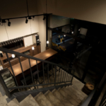 倉庫時のシャッターを活かした大開口のファサードがアイキャッチとなり、
