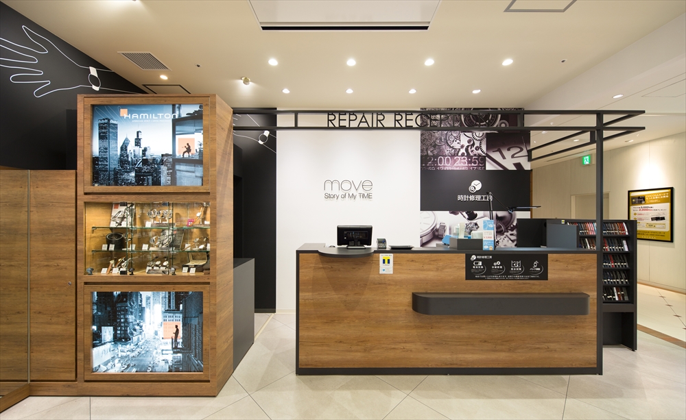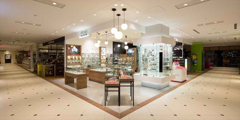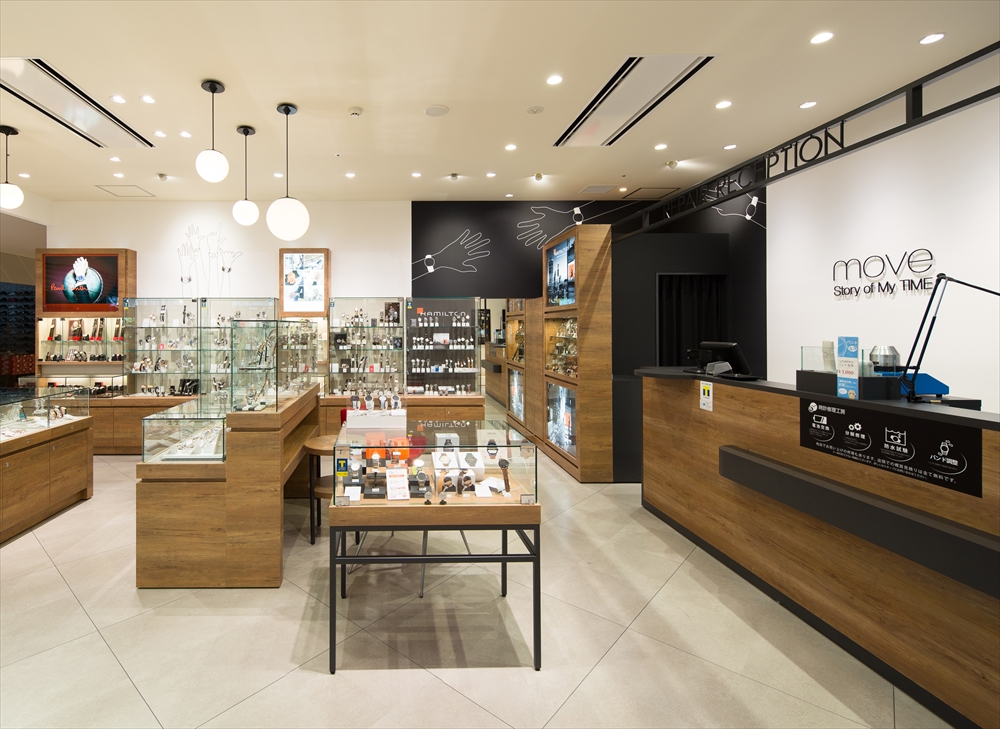 COCOSA3Fにあるシチズンリテイルプランニング様が運営する時計店。 販売だけでなく、修理工場も併設しているのが特徴です。 壁と天井はシンプルに塗装で仕上げております。 小物の物販店はほぼ什器で店舗が構成されておりますので ガラスの突合わせや、寸法など細やかに設計者と打ち合わせを重ね、製作致しました。